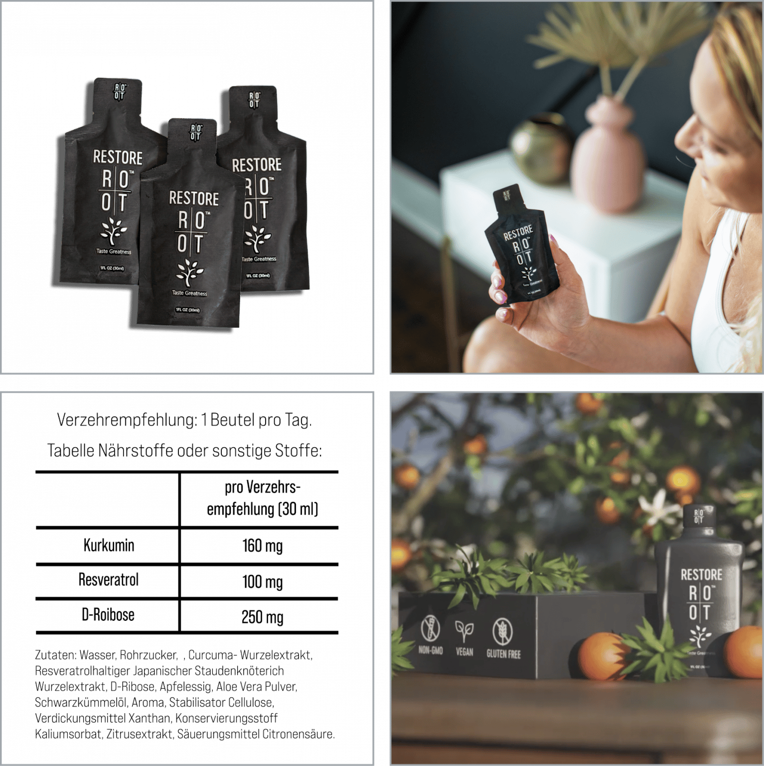 Dieses kraftvolle Nahrungsergänzungsmittel unterstützt Deinen Körper dabei, sich zu regenerieren und wieder ins Gleichgewicht zu kommen. Angereichert mit wichtigen Nährstoffen, die Entzündungen reduzieren und die Zellreparatur fördern, hilft ROOT Restore, Deine Energie zurückzugewinnen und Deine Vitalität zu steigern.