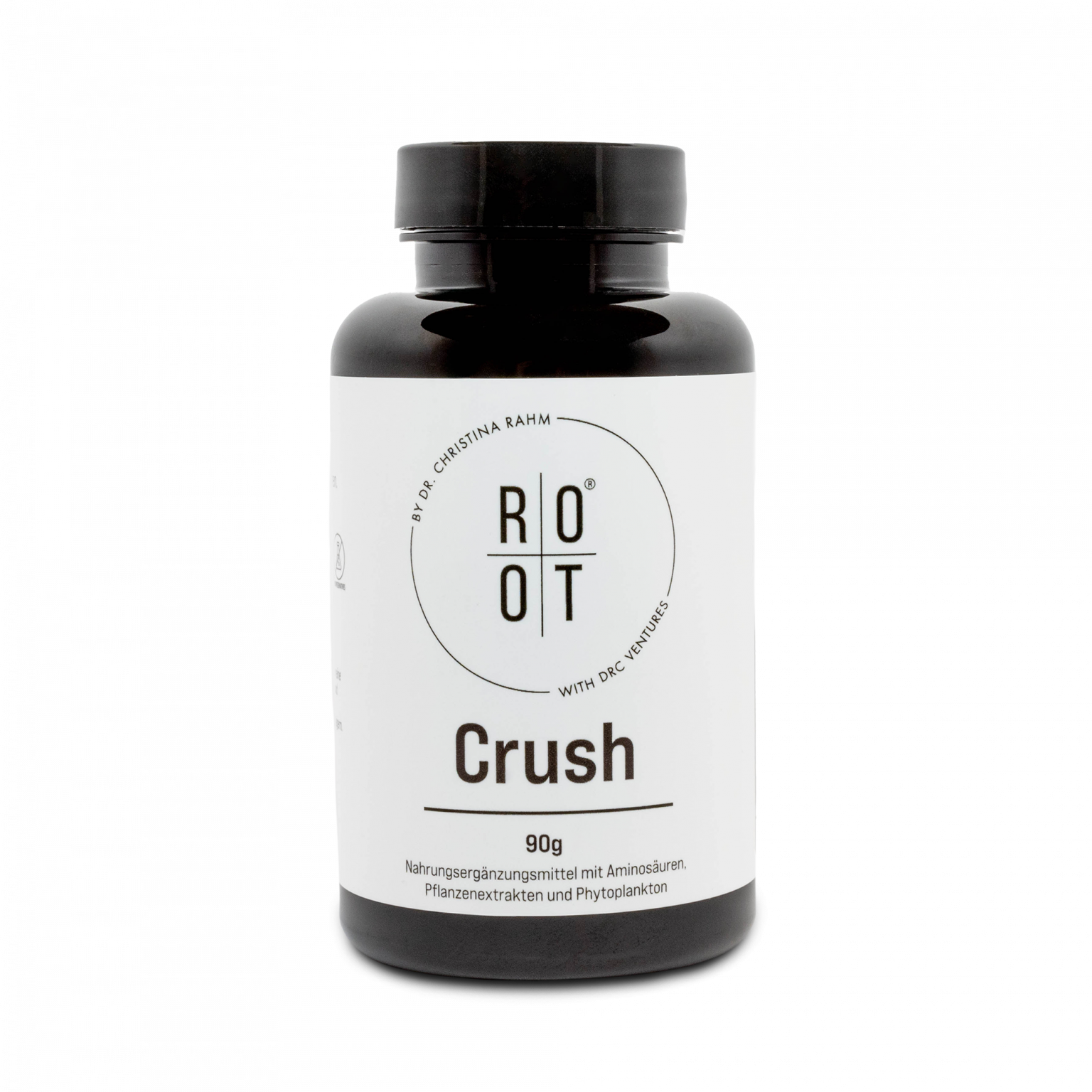 Körper nicht selbst gebildet werden. ROOT ist mit Crush einen Schritt weitergegangen und hat seinen Signature- Amino-Komplex in potente Superfoods und Phytoplankton von TetraSOD® eingebettet.