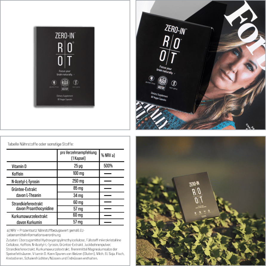 Mit ROOT ZERO-IN kannst Du Deinem Geist die Unterstützung geben, die er braucht! Diese kraftvolle Formel kombiniert sorgfältig ausgewählte Inhaltsstoffe, die helfen, die Konzentration zu steigern und gleichzeitig die Nerven zu beruhigen. Ideal, um den hektischen Gedankenfluss zu stoppen und die innere Balance zurückzugewinnen.